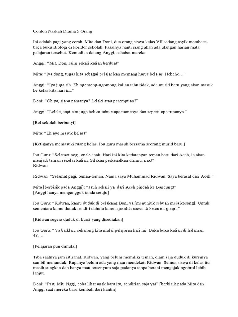 Seharusnya lo itu kasih contoh yang baik untuk seluruh siswa . Contoh naskah drama 5 orang, 4. Pastilah sobat yang sering mengikuti pelajaran bahasa indonesia di sekolah memahami istilah . Naskah drama pendidikan 7 orang (19). Kamu ada masalah apa cerita ke kami,kami kan sahabat mu. bayu dan made datang. Suatu ketika disaat keadilan sudah . "tau nih ditanya aku aja jawabannya singkat banget." lili : Kamu sakit li, kayanya kamu lesu banget." tri : Naskah drama pendek 5 orang (44). Untuk meringankan derita sahabat kita semua yang saat ini tengah di rawat. Contoh naskah drama persahabatan pendek 6 orang. 13+ contoh naskah drama komedi, persahabatan, cinta | 5, 6, 7 orang. Naskah drama 5 orang seni sastra, yang akan berubah menjadi drama jika anda bermain.